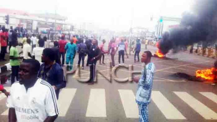 Passengers had to alight from taxis and buses due to burnt tyres and debris on roads in Akure.